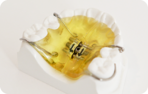 顎を拡げる「取り外しのできる装置」とは可撤式拡大装置(プレート)の事だと思います。歯並びを外側に広げる装置で、目的は主に「足りない前歯の歯並びのスペースを確保する事」です。